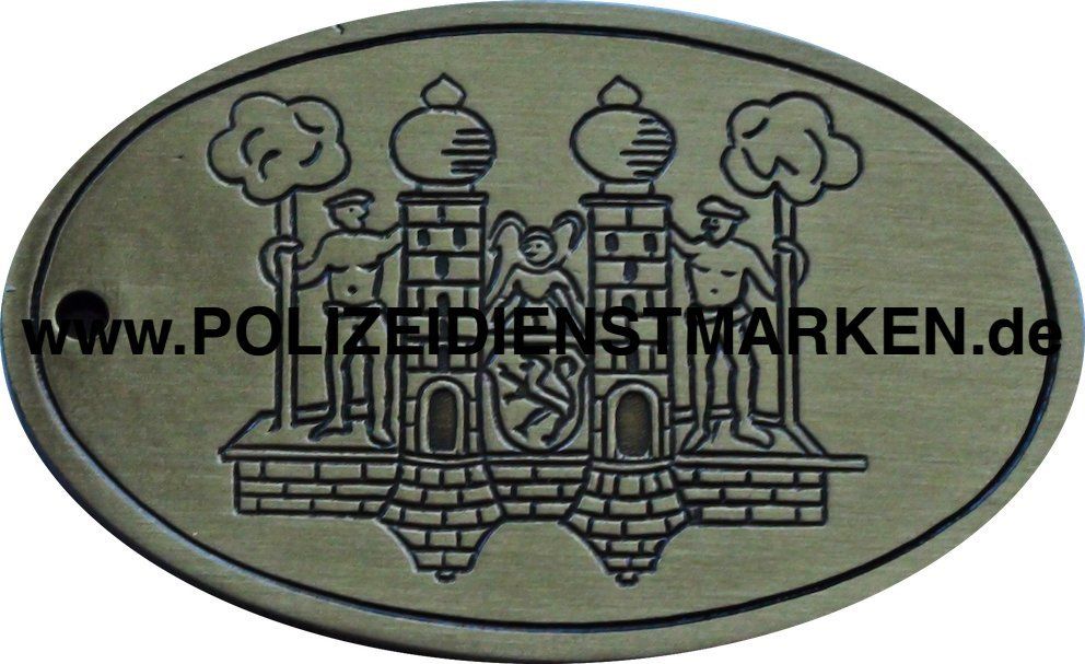 Stadtwappen und Dienstnummer auf der Vorderseite