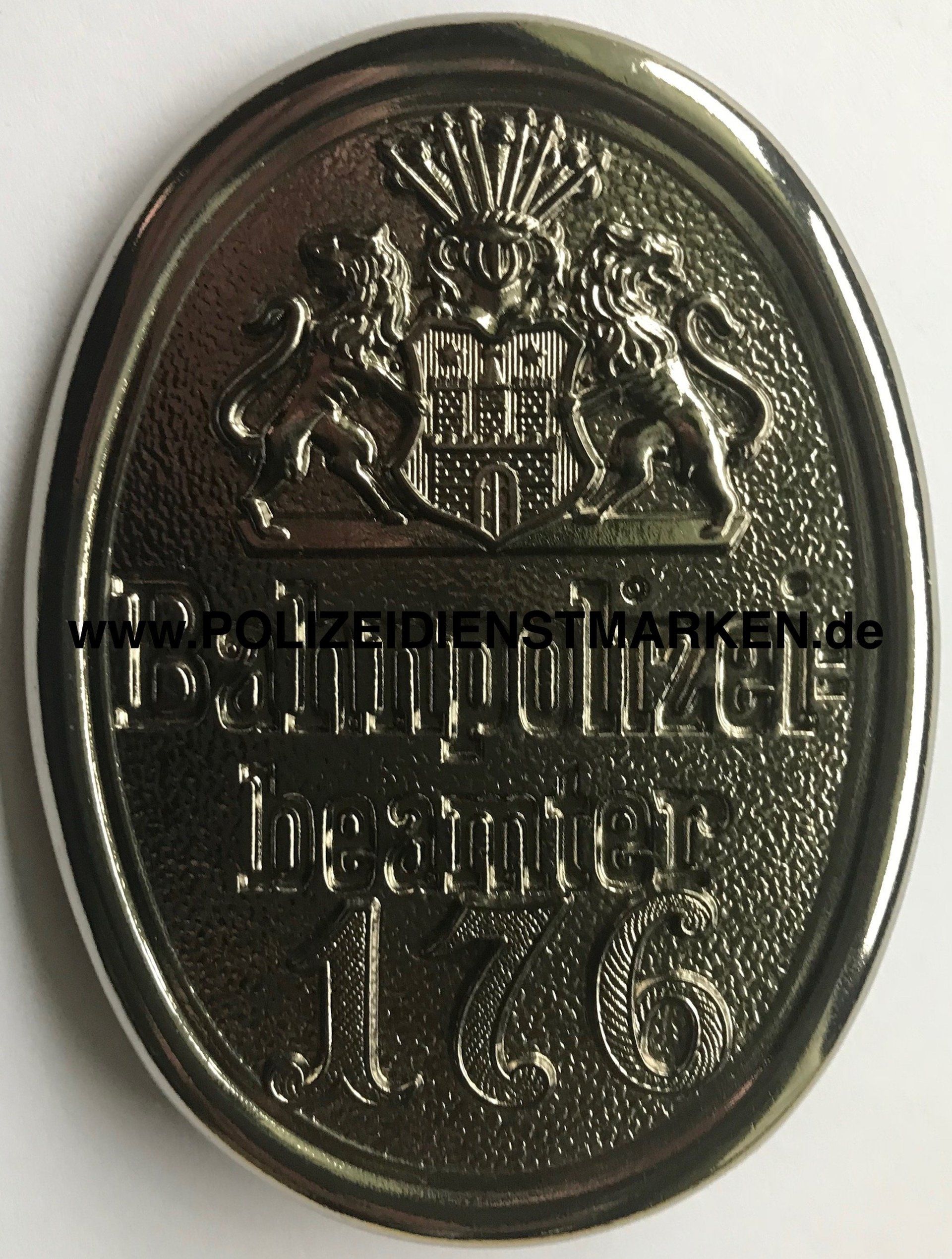 Bahnpolizeistern und Dienstnummer auf der Vorderseite